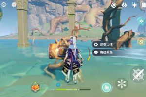 首先是破破島下方山洞的進入方法 1.先改變山體看到右邊山體變矮了。 2.右邊山體變矮效果(其實左邊的也變矮了)。 3.往右邊山那邊走就能看到一個洞口。 4.帶好安柏,進去就會看到火把機關。 5.點亮後山內水位下移(...