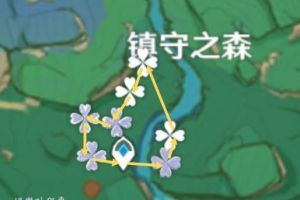 孔雀木在鎮守之森分佈廣泛,可按照如圖路線迴圈砍伐,共16棵(紫花代表三棵)。 注意那種兩棵長在一起的樹木無法砍伐。 首先來到鎮守之森傳送點,面前可見一棵孔雀木。 視角轉向東方向可見三棵孔雀木。 向北方向可見...