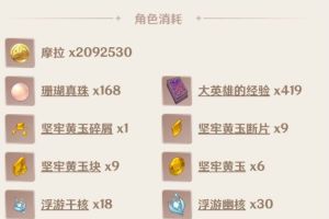 突破材料 先來看五郎的突破材料,地區材料是珊瑚真珠,boss材料是恒常機關之心,怪物材料是浮空靈。 珊瑚真珠 珊瑚真珠這個有點少平均一次珊瑚島44個淵下宮10個,平均兩天一刷新,如果你要圖突破80級那就需要168個也...