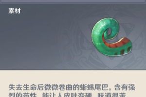 素材介紹 失去生命後微微捲曲的蜥蜴尾巴。含有強烈的藥性,能讓人皮膚變硬。味道很苦。 刷新時間24小時 採集藍蜥蜴,紅蜥蜴,綠蜥蜴,嗜髓蜴可以獲得蜥蜴尾巴。 採集路線 1.低語森林 2.星落湖 3.千風神殿 4.奔狼領 5...