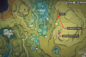 掣電樹地圖位置 掣電樹位於須彌北部護世林的洞窟中,地圖位置如下。 路線詳解