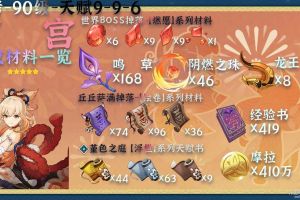 資源不夠的情況下,升到80級不突破,天賦7-7-6 陰燃之珠 【來源】:30級以上無相之火挑戰獎勵,每次可獲得2~3個陰燃之珠 【位置】:在稻妻九條陣屋的西北方 龍王之冕 【來源】:70級以上若陀龍王挑戰獎勵,每週只能...