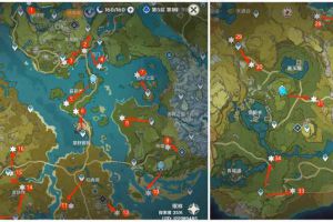配隊建議 1.帶上七七或者煙緋(擁有可以看到璃月特產的天賦) 2.攜帶2個風系角色,或者比較適合跑圖的角色。 具體路線 區塊一:慶雲頂路線 線路一:8朵清心 線路二:20朵清心 區塊二:翠玦坡路線 線路一:24朵清心...