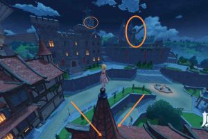 第一個位置 圖中小圈圈的位置是一個傳送點 從傳送點可以飛到圖中風主的位置 海報就在風主身後的房頂。 第二個位置 距離第一個位置很近很近的風車後面 要注意觀察呦~ 圈圈的地方就是第一張圖風主站的位置 ……從那裡就...